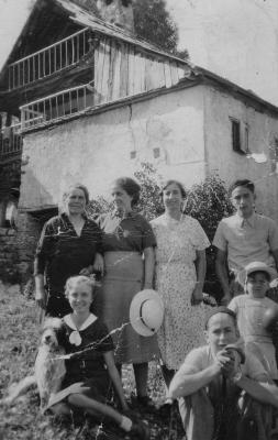 [La famille Liautaud sous les tilleuls de la ferme de Chastelonnette - 1943]