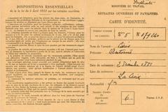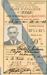 Carte d'invalidité délivrée à Ciais Antoine le 23 octobre 1940.