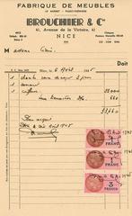 [Facture] Fabrique de Meubles - Le Sarret Puget-Théniers. Brouchier & Cie - 41 avenue de la Victoire, Nice.