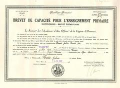 Brevet de capacité pour l'enseignement primaire. Institutrices - Brevet élémentaire.