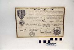 Diplôme de la médaille commémorative de la bataille de la Somme
