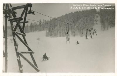 Les sports d'hiver dans la Haute-ProvenceAllos (B.-A.) alt 1450 m. - Le Monte-pente