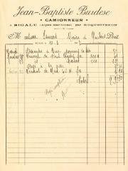 [Facture de Jean-Baptiste Burdese (camionneur) pour le transport de marchandises pour le compte de Monsieur Isnard (Eloi), taillandier à Cuébris]