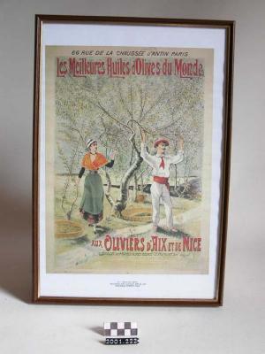 Affiche publicitaire (reproduction) vantant les productions de la Côte d'Azur : l'huile d'olive et l'eau de fleur oranger