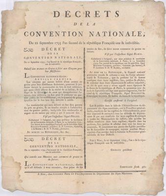 Décrets de la Convention Nationale n°1539 et N°1540 - 27 septembre 1793