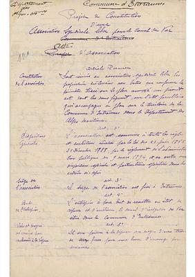 Entraunes - Projet de constitution d'Association syndicale libre pour le Canal du Var - 1920