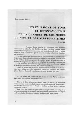 Les émissions de bons et jetons-monnaie de la chambre de commerce de Nice et des Alpes-Maritimes - 1914-1926