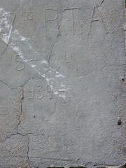 [gravure d'un emblème militaire sur un bloc de calcaire au col de Pal]