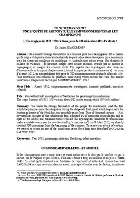 Tu ne tueras point ! Une enquête de Sartory sur les empoisonnements par les champignons
