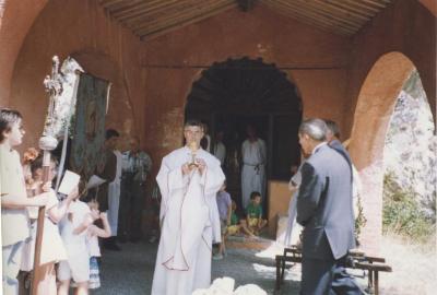 La Croix-sur-Roudoule, Procession à la chapelle Saint Arnoux avec le Père Fantozzi