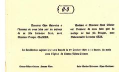 [Faire-part du mariage d'Ollivier Prosper avec Cèze Germaine ]