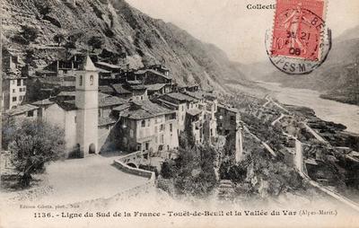 Touët-sur-Var - La bourgade (et le haut) (A.-M.) Près de Nice - chemin de fer S.F., à 2 km des Grandes Gorges du Cians - Fraîcheur incomparable - Sources curieuses - Pêche à la truite, etc.