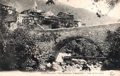 [vue sur la scierie du Brusquet son pont et l'eau qui sort de l'Enfer]