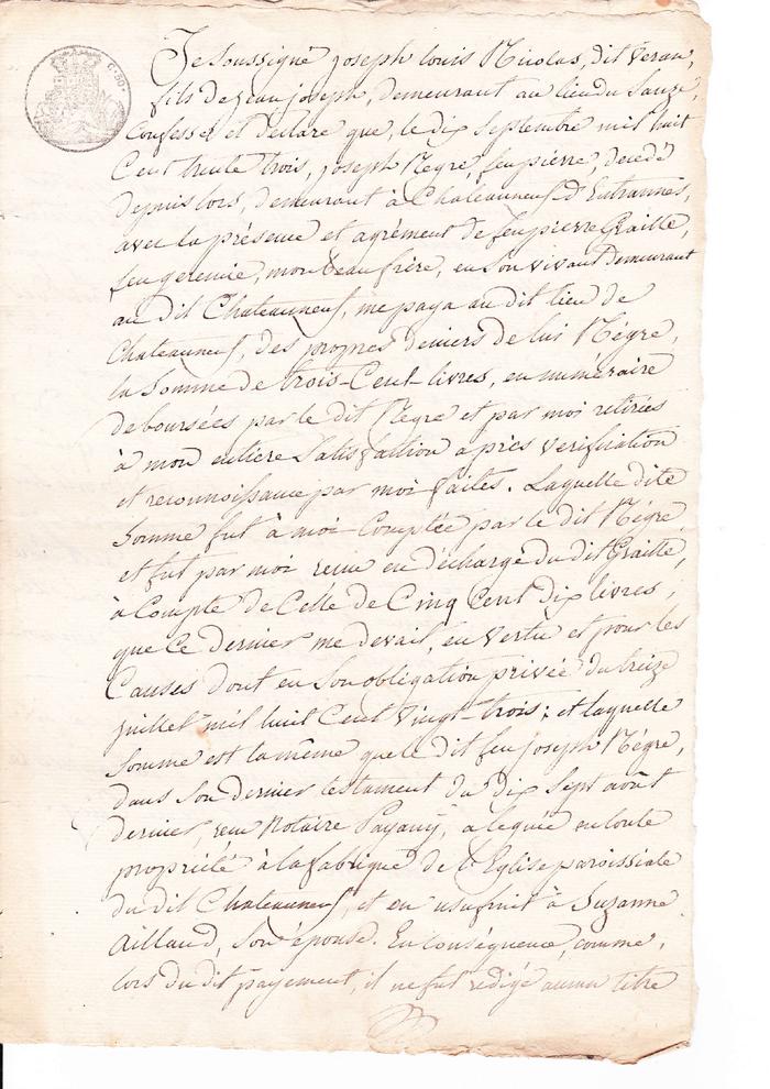 Procès de quatre habitants de la commune de Chateauneuf -"Extrait des registres du greffe de la justice des paix du Canton de Guillaumes"