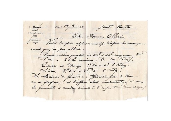 [lettre du clerc de notaire Giletta - 15 mai 1924]