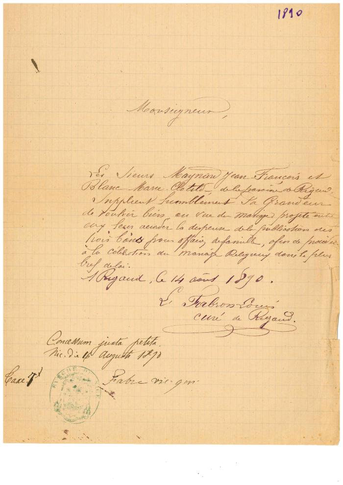 [Demande de dispense de mariage pour Jean-François Maynan et Marie-Clotilde Blanc]