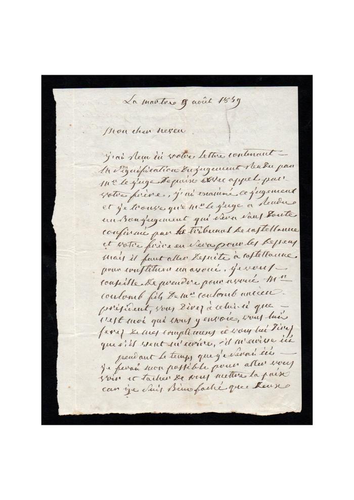 [Lettre de Maître Pellicot à son neveu Joseph Casimir Salamite- 1859]