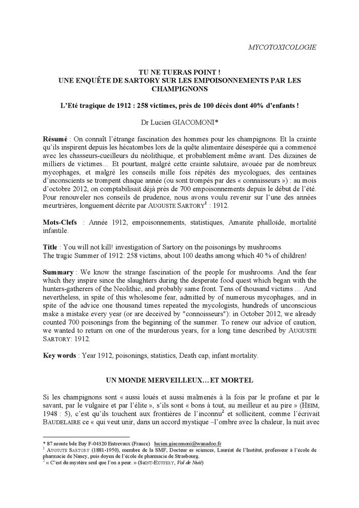 Tu ne tueras point ! Une enquête de Sartory sur les empoisonnements par les champignons