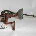 Description : la machine se fixe par un serre joint. Une manivelle entraine un système de pignon et engrenage pour provoquer la rotation du goupillon. Une ventouse permet l'assise de la machine et evite les projections.