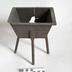 Description : Récipient sur plan carré dim à la base 12,8 x 12,8 cm, à bords moyens et évasés (Ht 8,5 cm), dim au rebord sup (20 x 20 cm) le rebord supérieur étant large de 1,5 cm (ép 0,3 cm). Le fond à claire-voie, est constitué de 4 barres de section triangulaire.