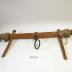 Description : Barre de bois (D : 9 cm) percée de deux trous à chaque extrémité pour le passage des attèles, et en son centre pour y fixer l'anneau d'arrimage du timon. Les attèles en bois dur et courbes passaient de chaque côté du cou de la bête.