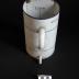 Description : Récipient demi-cylindrique à fond plat, avec une poignée fixe en forme d'oreille. Un robinet en forme de virgule sert à l'évacuation. Il est installé à la base du récipient. Ce dernier est gradué à l'intérieur de 0 à 2 litres.