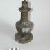 Description : Un pied annulaire souligné de deux cannelures sur la face supérieure qui supporte un réservoir à bords moyens galbés se prolongeant après retrecissant par un goulot se terminant par une colerette surmonté d'un bec et une tige métallique pour faire tremper la mèche dans l'huile.