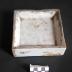 Description : Récipient en plan carré à fond épais et bords bas évasés.