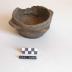 Description : Récipient en bois de cerisier (monoxyle )tourné sur plan circulaire à fond plat bords moyens galbés légèrement évasé avec une colerette chanfreiné pour former aux angles des oreilles horizontales de préhension. L'intérieur est demi-sphérique.