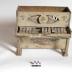 Description : Piano droit miniature peint en blanc et agrémenté de guirlandes florales. Les pieds avant sont cannelés. Le corps sur la face avant est ajouré avec un motif de flèche opposé. Le corps sur la face arrière est également ajouré. Le piano ne possède pas de couvercle.