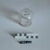 Description : Ampoule de verre sur plan circulaire, à bords hauts, galbés renflée vers l'extrémité supérieure, laquelle est par ailleurs dotée, en son centre, d'un bouton en verre.
