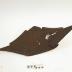 Description : Pièce métallique affectant la forme d 'un losange (61,5 x 15,6 cm), présentant plusieurs petits décrochemnts (sysmétriques) sur ses rebords, et dont la surface est courbe. L'objet présente, aux deux extrémités dans le sens de la longueur, deux petits crochets, permettant la fixation sur le sep, il est donc résersible. Abîmé (trous dans le métal), il a été réparé artisanalement (pièces rapportées).