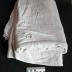 Description : Housse faite de trois largeur de pièces cousues ensembme à l'aide d'un surjet fait main pour former un sac cousu aux deux extrémités. On remarque deux petites ouvertures reserrés par une lacette destinées à renouveler le contenu de la paillasse. On remarque aussi un nombre impressionnant de pièces et de reprises.