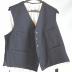 Description : Vêtement bleu marine et noir doublé de satinette blanche rayée de noir. Une poche intérieure avec bouton. Quatre poches extérieures. Ouvert sur le devant et fermé par cinq boutons et cinq boutonnières. Dans le dos une martingale réglable avec boucle.