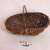 Description : Panier en osier marron. Tressage simple, chaque brin passe devant ou derrière chaque montant. Il comprend un cercle et 11 montants. Celui du centre fait d'une même branche fait aussi office d'anse.