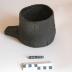 Description : Récipient sur plan circulaire à fond plat se prolongeant par une queue. Le fond est fixé aux bords par des clous et du fil de fer. Bords moyens droits irréguliers et fendus.