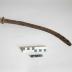 Description : Tige de section carré, incurvée, avec tête martelée à une extrémité. Elle est traversé à proximité de la pointe de trois mortaises (1 cm d'espace), percées dans l'épaisseur des bords latéraux. A 1 cm de la tête sur la face frontale se trouve une mortaise plus longue (2 cm).