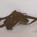 Description : A/ cadre et quartier : Un cadre en bois en "V" inversé . La pointe du "V" est entaillée en mortaise quadrangulaire ( L : 7 cm / Lg : 8 cm/ P: 3 cm) pour permettre que le sufro s'ajuste au mieux à la selle. Sur le cadre se fixe le coussinet à l'aide de clous (Ep : 6 cm). Il est composé de morceaux de tissus épais et de cuir. La bourre est mixte. Elle est composée à la fois de laine et de paille. Le cadre est recouvert de deux pièces de cuirs ( es quartiers). Ils sont fixés par des clous à tête ronde en cuivre, au sommet de la selle. Un motif en losange et étoile est constitué par de petits clous de décoration et de fixation. Une sangle (sous-ventrière) partant des extrémités des quartiers est composée de cinq courroies successives, reliées entre elles, soit par rivet aluminium, soit par des boucles et des oeillets permettant le réglage. Une courroie doublée (sufro) est maintenue par deux anses métalliques quadrangulaires. Le sufro sert à maintenir les deux brancards. Une sangle plus étroite passe dans les anneaux des extrémités. Elle permet de régler la hauteur du brancard (réglages boucles et oeillets) Un anneau rectangulaire fixé au cadre sert à attacher la sangle de la croupe (croupière).