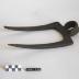 Description : Fer de forme rectangulaire avec deux pointes à chaque extrémité. Les pointes sont de section rectangulaire. Elles sont plate et incurvée vers leur sommet. L'oeil est ovale et s'amincie vers les dents.