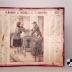 Description : Calendrier décoré d'un guillochis et d'un liseré rouge. L'intitulé est sommital noire sur fond blanc. Un tableau central sépare quatre triplets de mois séparés horizontalement par un cadre réservé au éclipses à gauche et aux saisons à droite. Les mois sont encadrés par un liseré rouge. Iconographie : sur un trottoir mouillé, un homme corpulent avec une moustache et un large chapeau de feutre et habillé d'un tablier recouvrant sa veste verte. Il s'apprête à servir des marrons chauds à deux jeunes femmes distinguées vêtues de manteaux à bordures de fourrure tombant en dessous des genoux et laissant voir des bottines. Un jeune garçon de dos en cape et képi à liseré rouge contemple la scène. La scène est intitulé : "Chauds les marrons"