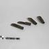 Description : Petite plaque de métal, dont les 2/3 tiers supérieurs ont une forme de demi-cylindre sur plan elliptique, présentant des angles arrondis et perforés d'un petit orifice vers leur partie supérieur. Le tiers inférieur est constitué d'un cylindre (une languette de la même plaque que celle dans laquelle sont taillés les 2/3 supérieurs, qui a été enroulée) creux ( L 3,7 cm, diam 1,5 cm )