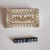 Description : Étui blanc ouvrable sur le devant contenant des feuilles de papier très minces. Des dessins géométriques dorés sont imprimés au dos du carnet et sur la tranche. Les feuilles de papier ont sur le côté une petite bande prévue pour le collage.