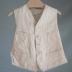 Description : Vêtement en tissu blanc de deux tissages différents. Une toile fine pour le dos, un tissu plus épais et côtelé pour le devant. Présence de quatre poches insérées dans une doublure sur devant dont deux à gousset. Le gilet est fermé par cinq boutons (nacre) et boutonnières. Présence d'une martingale dans le dos avec une boucle doré.
