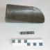Description : Tôle cintrée dont une des extrémités est découpée pour former un arrondi. L'autre extrémité est soudée à une tôle découpée en portion de cercle. Cette dernière tôle devait porter un manche soudé. Les bords de la tôle sont rabattus pour éviter de se couper.
