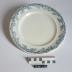 Description : Assiette plate couleur blanchâtre avec une guirlande bleue tout le long du bord et une inscription au dos (Cf. ci-dessus).