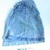 Description : Pièce de tissu rectangulaire froncée au niveau de la taille et prolongée par deux ceintures de 43 cm de chaque côté. Deux poches (10 cm de côté) avec un petit revers (2 cm). Au dessus se trouve une bavette avec un petit col et maintenu par une bride fermée de 50 cm. Sur le bas du vêtement, présence d'un ourlet de 3 cm avec un dessin différent de celui du vêtement. Dessins alternant carrés et fleurs roses.