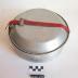 Description : 1 - Récipient de section circulaire avec des bords hauts et droits, ouverture renforcée. Deux petits tôles diamétralement opposées et fixées par quatre rivets : passants pour la lanière de fermeture et les anses mobiles. (H : 10 cm D : 24 cm)