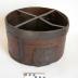 Description : Décalitre en bois déroulé de forme cylindrique ouvert dans sa partie supérieure avec un renfort circulaires en fer plat riveté auquel est rattaché deux fers plats formant croix eux-mêmes liés par un axe en fer rond au centre de la mesure. Le fond est en bois.Le décalitre a été réparé avec un morceau de tôle cloué.