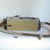 Description : Aspirateur de type traîneau de section carré. Présence de deux glissières métalliques sous la base. Une poignée sur le dessus, deux crochets sur les côtes maintiennent fixé au corps de l'appareil le couvercle d'où s'échappe le tuyau d'aspiration. L'intérieur contient le sac à poussière de 24 cm de profondeur et de section circulaire. L'appareil est entouré d'une matière décorative à rayures jaunes et noires. Le tuyau d'aspiration est en métal flexible recouvert d'une toile. L'embout est courbe et rigide. (140 cm + 25 cm). Sur le dessus se trouve le bouton de marche arrêt. A l'arrière, l'emplacement pour mettre le fil électrique amovible.