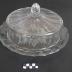 Description : Base de cloche constituée d'une assiette en verre ovale à bord courts allant en s'évasant. Le fond est travaillé. Sculpture en creux représentant une étoile étirée à huit branches. Présence d'une soufflure dans le verre. Inscription creusée dans le verre / Val St Lambert Belgique. Le pourtour est légèrement ondulé.